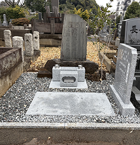 - リフォーム後:墓誌追加、花立香炉水鉢交換、敷石追加、墓域内五色砂利敷設